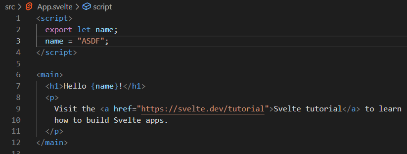 6. App.svelte 파일에서 간단하게 name만 변경해보겠습니다.