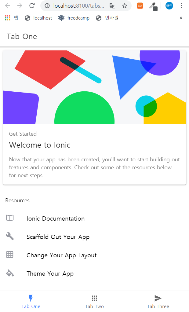 - 수정한 내역들을 모두 저장하고, http://localhost:8100/tabs/tab2 로 다시 접속하여 화면을 확인합니다.
